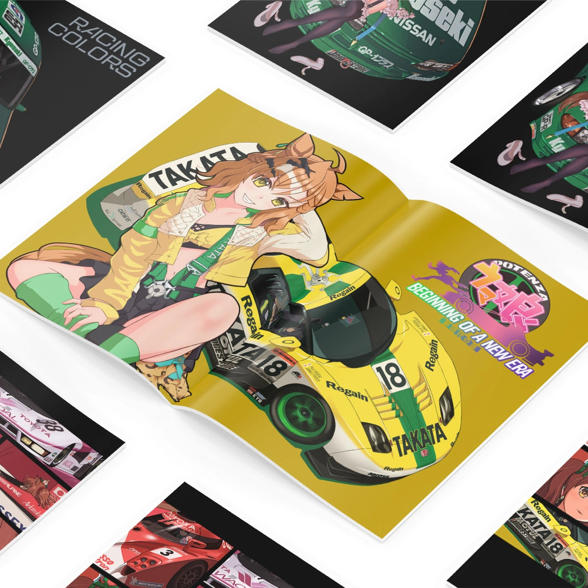 Another release from overseas, this book is by Shimane Nouki – @shimane_nouki – of Uma Musume: Pretty Derby, exploring the similarities between their racing wear and 90’s racecar liveries.